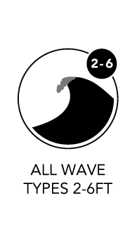 2-6ft, or waist high to well overhead. Great in many conditions from crumbly, flatter wave faces to good quality surf with hollow sections. The rocker has been proven over time to be the most versatile in the x-series.
