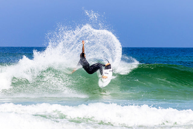 CONCAVESingle concave under front foot moves to double concave between the fins. Based on team favourites, JS chose to go back to his “reverse concave” which is deeper under front foot and shallower at each end of the board. We found this to be the fastest of them all, as it creates maximum water flow.